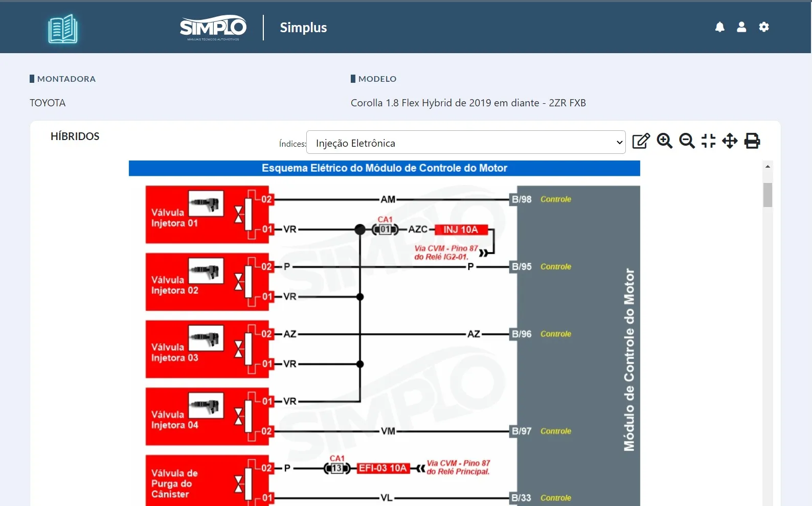 O Manual Híbridos do eSimplo contém todas as informações sobre esquema elétrico, com procedimentos de segurança e desenergização e desconexão da bateria de alta tensão.