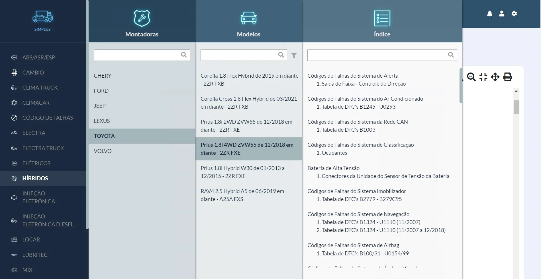 Manuais de manutenção de veículos leves híbridos de fabricantes nacionais e importados.